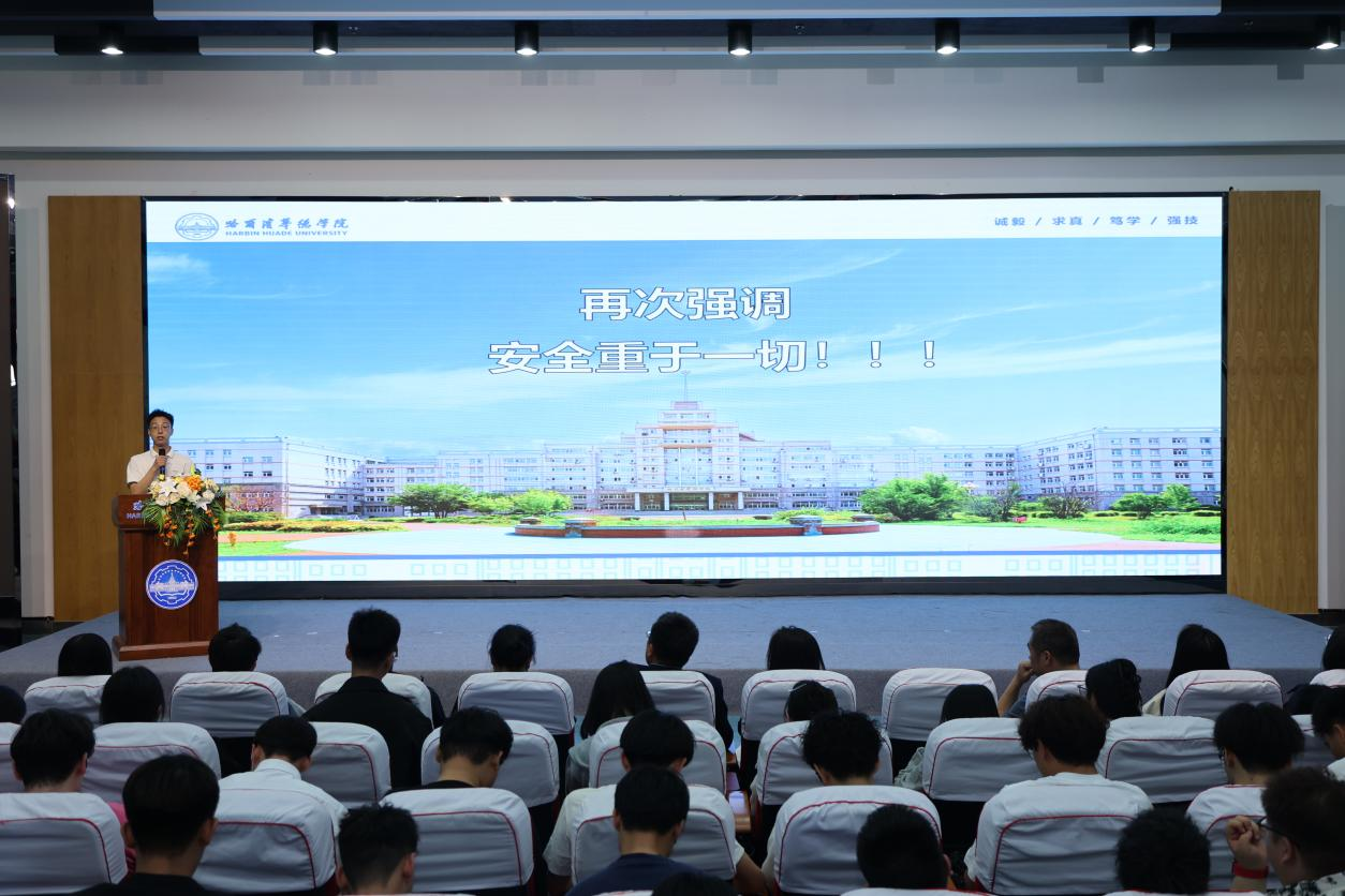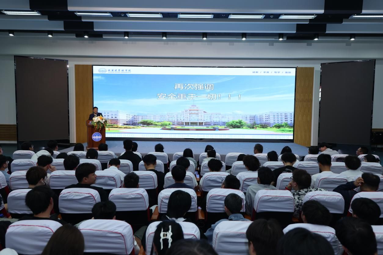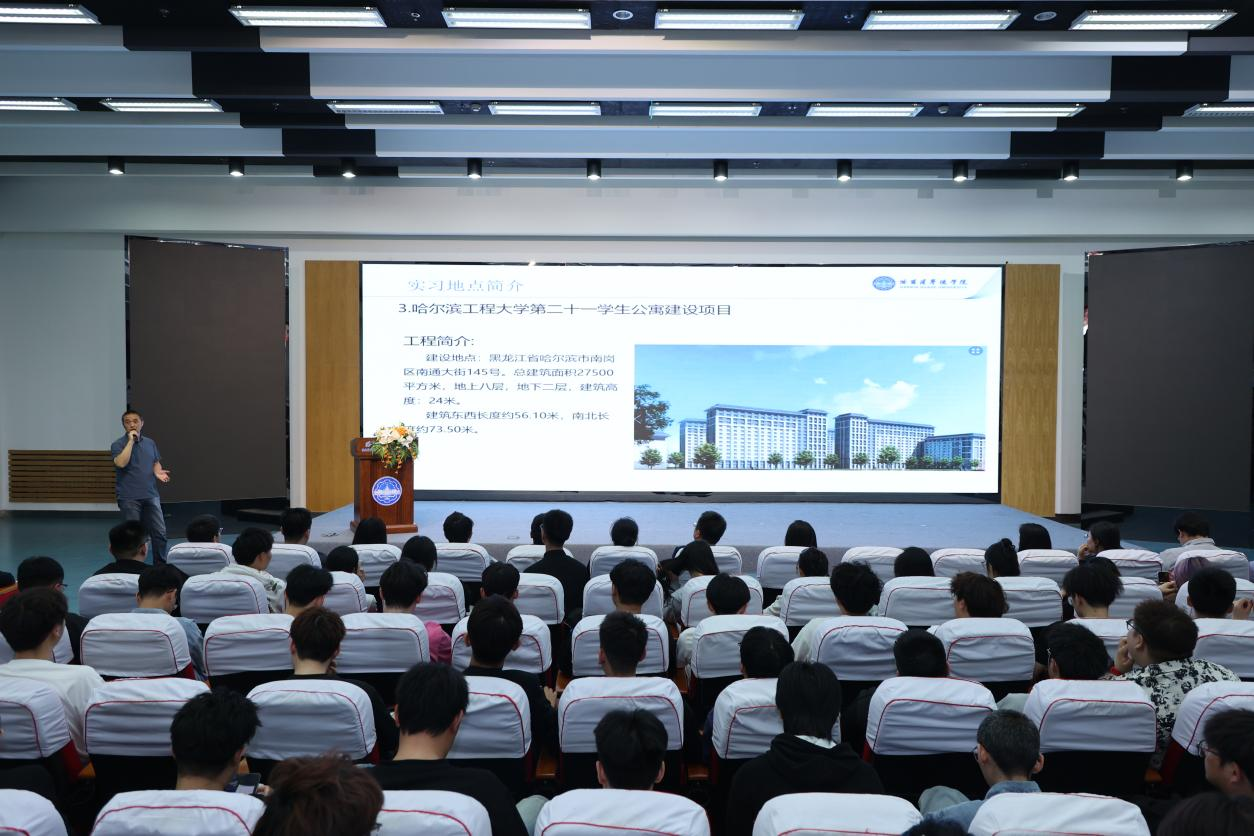 实践教学中心副主任唐宝亮详细介绍了实习的整体规划安排,包括土木工程专业生产实习、道路勘测设计实习和工程造价专业施工现场实习的日程安排、实习内容及安全要求,确保员工了解实习任务和相关要求,并着重强调,实习现场环境复杂,安全风险较高,同学们必须严格遵守实习单位的安全管理制度,正确佩戴安全帽,严禁在施工现场嬉戏打闹、擅自进入危险区域。他还提到,公司已为每位实习同学购买意外保险,但同学们自身也要增强安全意识,提高自我保护能力,确保实习期间的人身安全。