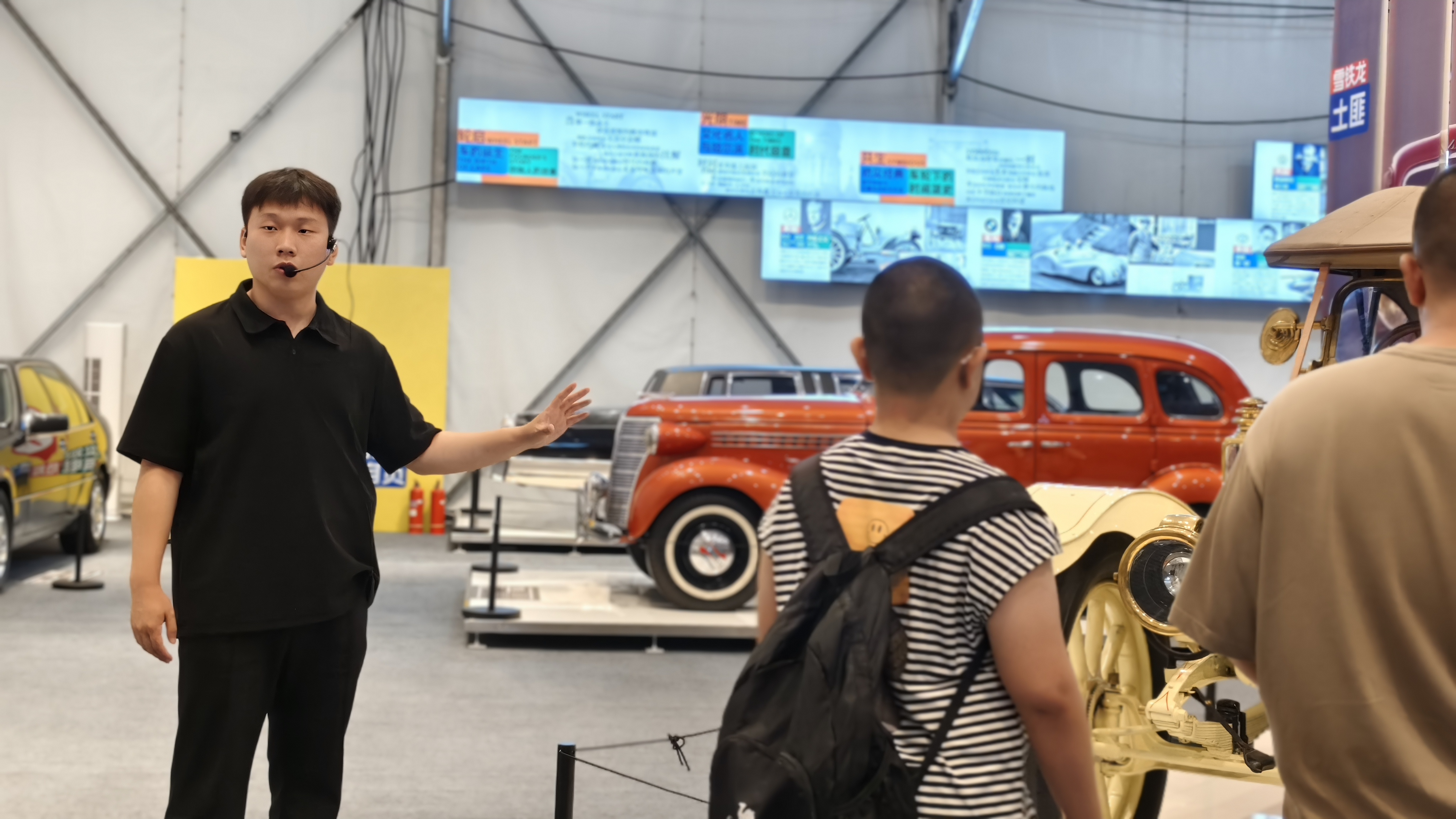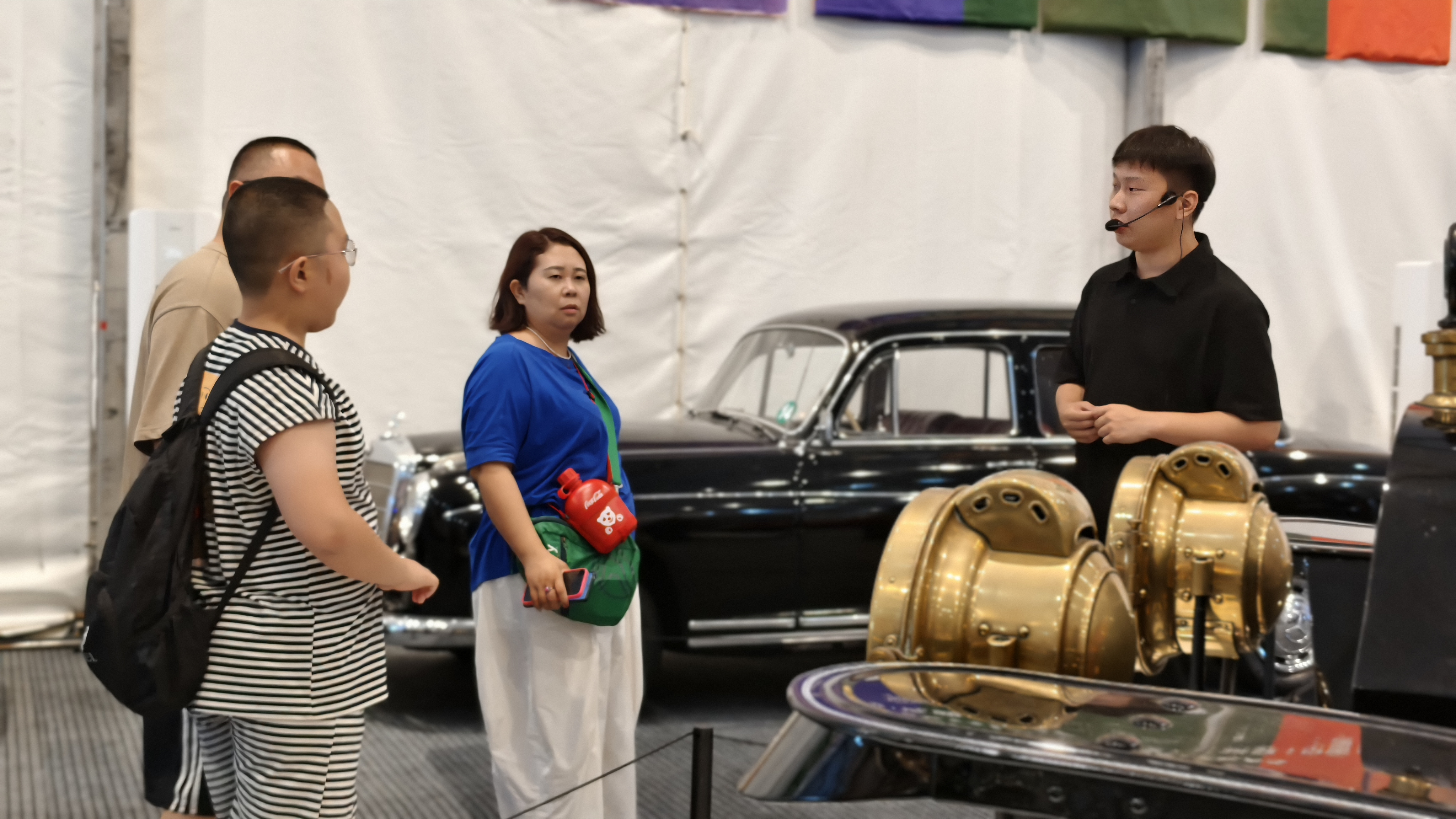 实践团队向游客讲解介绍了19世纪90年代到20世纪70年代这一黄金时代的代表车型。展品包括全国现存仅3辆的1890年蒸汽机,首度公开展出的1945年吉斯110B国宾礼宾车,全球仅存1辆的红旗CA770L旅行车等珍贵藏品,帮助游客在逛展的同时,还可以沉浸在历史文化的氛围里参与互动拍摄,感受不一样的汽车工业传奇。