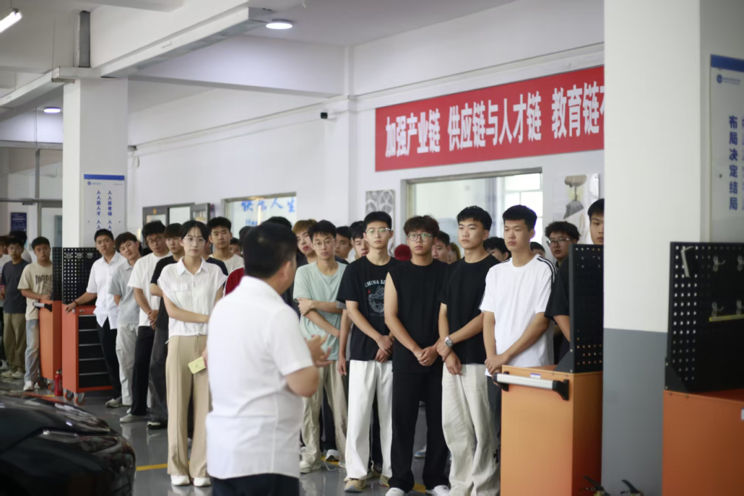 于洪超老师带领车辆工程、新能源汽车工程、交通运输等专业的员工走进汽车构造与原理展示区,从发动机的精密结构,到底盘的传动系统,再到车身的设计逻辑,均成为同学们关注的焦点。于老师依托实物,系统讲解各部件的功能与运行机制,将抽象理论转化为具象认知,不仅解答了新生的疑问,更激发了同学们对汽车领域的深入探索兴趣。