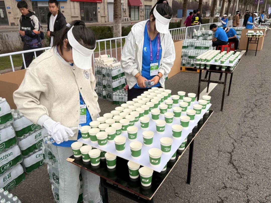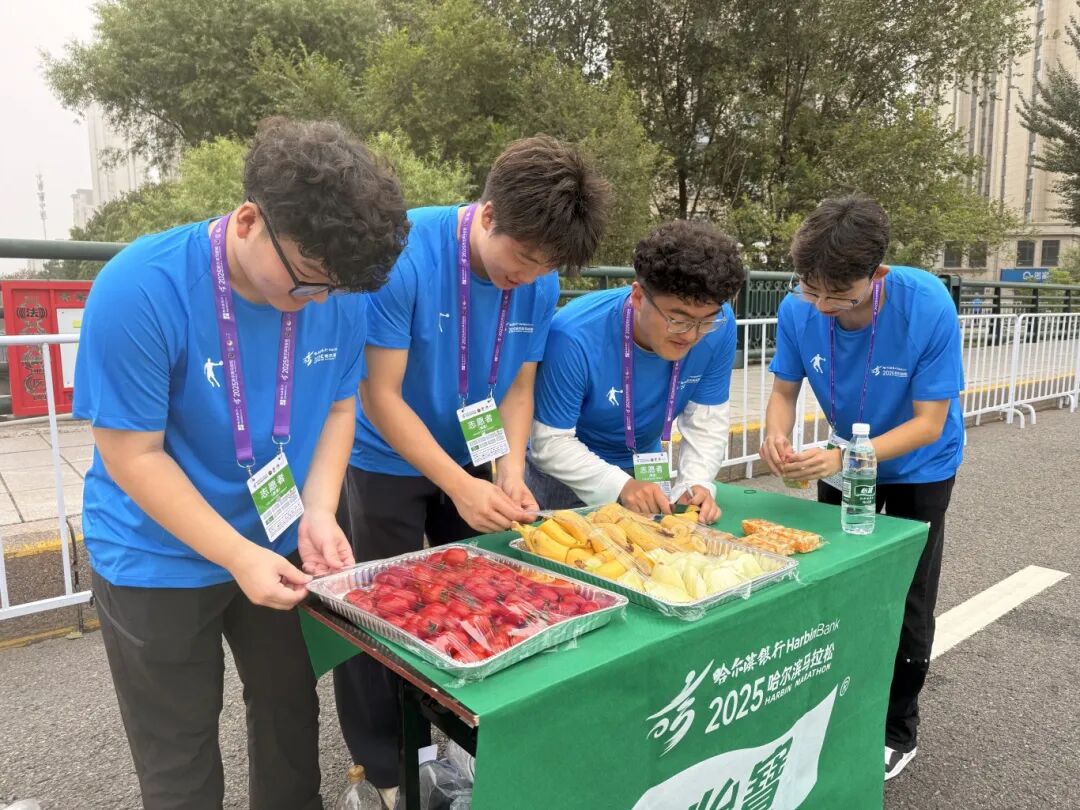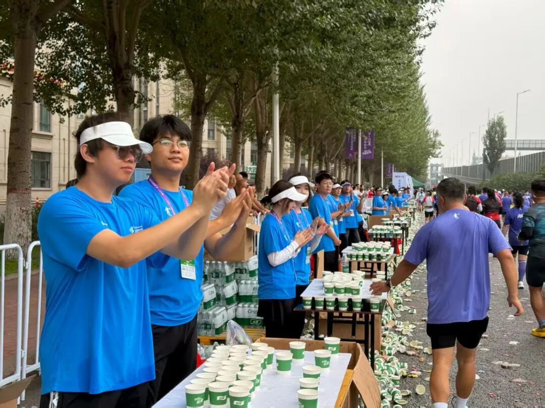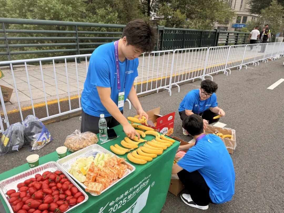为提升志愿服务质量,志愿者们于8月28日参加了赛前系统培训。同学们学习了马拉松基础知识、补给站服务规范、服务礼仪等专题内容。通过反复练习递水技巧、补给品摆放科学间距、语言引导规范等细节,同学们熟练掌握了服务要领。8月31日凌晨四点,志愿者们整装出发,将培训所学付诸于实践。他们合理摆放水杯位置,避免选手取用时发生倾倒;精心布置食品补给站,将水果切成易于取用的规格,处处体现专业化与人性化的服务理念。