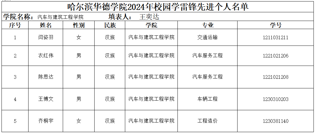 2024年校园“学雷锋先进个人评选活动已经结束,经严格执行评选标准,秉承“公平、公正、公开”的工作原则,初步评定王博文等5人为2024年校园“学雷锋先进个人”。