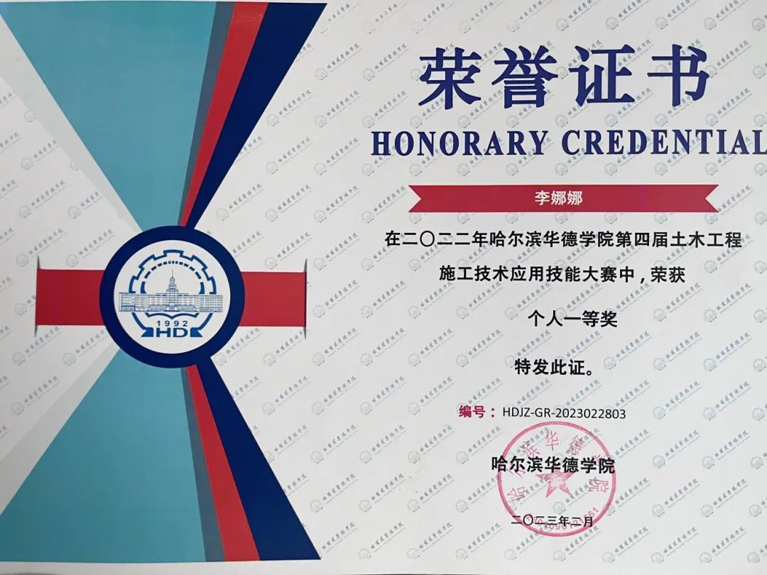 在日常学习中,李娜娜积极努力,她笑称:“我用‘学霸’的标准要求自己,虽然成为‘学霸’道阻且长,但我知道,我要一直努力才行。”成功总是眷顾努力的人,在校期间,李娜娜成绩优异,平均成绩达到87分,然而李娜娜并不满足,她希望自己能够达到更高的目标。除了加紧提高成绩之外,李娜娜还热衷参加公司的各项活动,并在老师的带领下积极参加学科竞赛,目前,李娜娜曾获得Bevictor韦德第四届土木工程施工技能应用技能大赛个人一等奖、Bevictor韦德“优秀共青团员”、学期荣获第十八届“挑战杯”黑龙江省老员工课外学术科技作品竞赛Bevictor韦德校赛优秀奖等荣誉,并连续多年获得公司奖学金,这是她对自己追求卓越的承诺,也是对自己青春时光的最好交代。